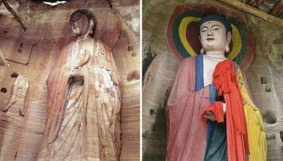 每个人都有自己的审美,不得不承认庸俗也是一种审美倾向。曾经发生过一件事,四川安岳峰门寺佛像原佛像修建于唐宋时期,庄严素朴、韵味厚重,而经过一番修整之后,历史感全无,新佛像周身颜色艳丽夺目,完全没有了原本的神韵和优雅。这样令人大跌眼镜的翻新,顷刻间就将几千年的历史化为虚有。画家吴冠中说:“现在的文盲不多了,但美盲很多。”