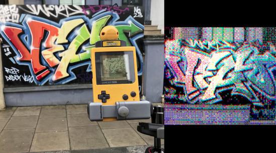 比如摄影师MattGray利用最为原始的三原色叠加法,将只能拍摄黑白画面的Gameboy摄像头附加用不同的色卡滤镜进行拍摄,得到不同灰度的照片,并在后期根据不同通道进行进行合成,得到了最为原始的彩色照片,甚至有些“波普艺术”的感觉。