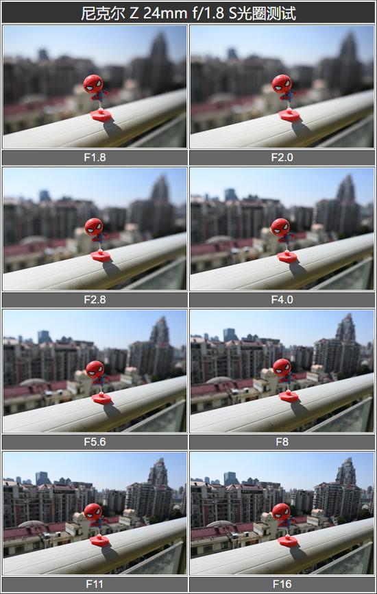 从测试图表中可以清楚看到不同光圈下背景虚化效果的不同。尼克尔 Z 24mm f/1.8 S在F1.8光圈全开的情况下,背景的虚化非常柔美漂亮。