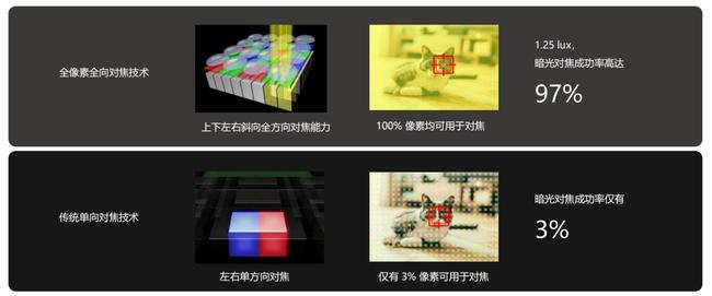 对焦方面,Find X2 Pro首发全像素全向对焦技术,彻底改进了图像传感器微透镜结构和布局,使用2*2 Quad bayer阵列,4个像素共用1个片上透镜,显著提升感光能力和对焦性,暗光环境下对焦性能和对焦精确度方面进步明显。能够让你轻松捕捉稍纵即逝的精彩瞬间。